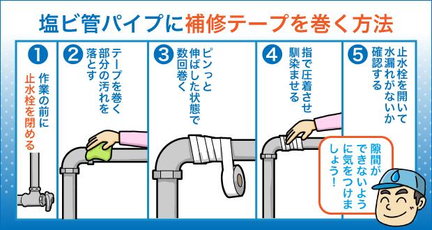 ちょっとした排水の水漏れなら、補修テープによって応急処置を施すことができます。